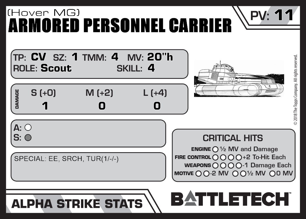 | Armored Personnel Carrier (Hover SRM) | 131 | 11 | Introductory | TR:3039 | |