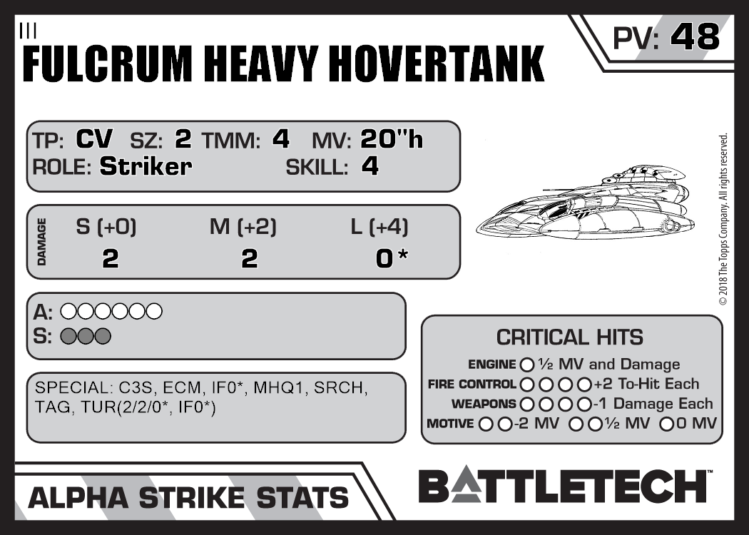 Fulcrum Heavy Hovertank X 1,686 43 Experimental XTR:Davion