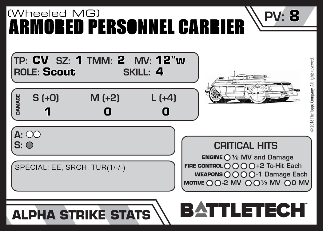 | Armored Personnel Carrier (Tracked LRM) | 208 | 8 | Introductory | TR:3039 | |