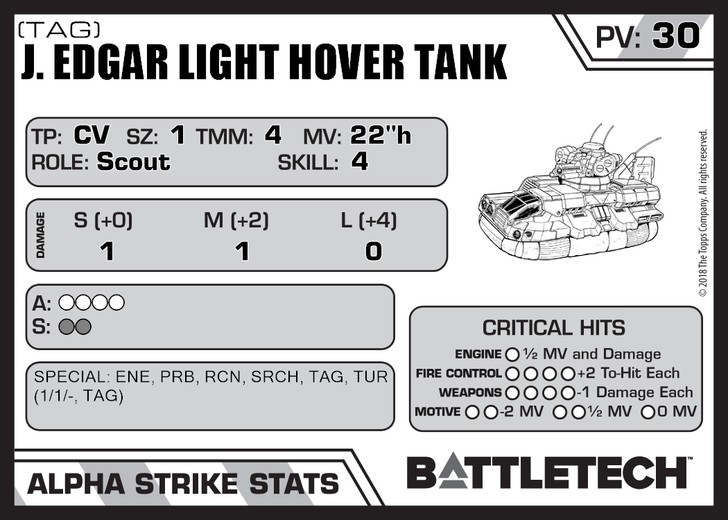 | J. Edgar Light Hover Tank (MG) | 482 | 24 | Introductory | TR:3039 | |