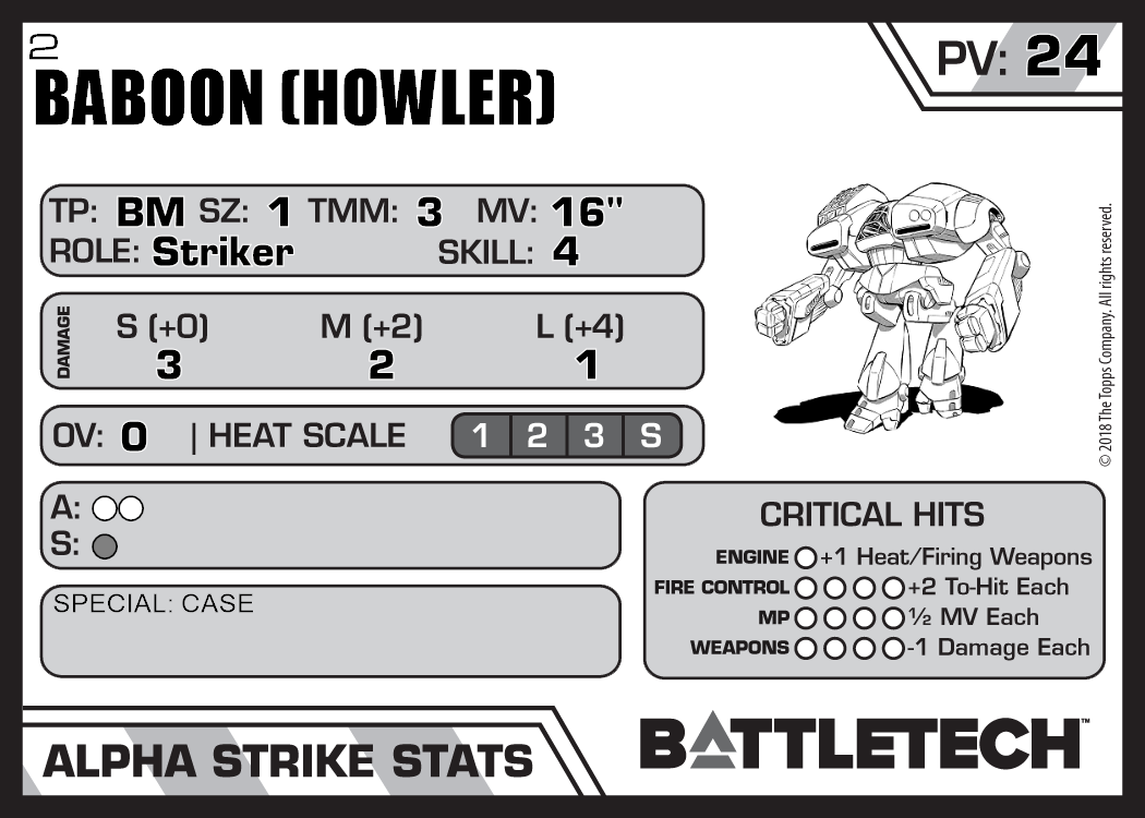 | Baboon (Howler) 6 | 550 | 23 | Advanced | RGv1 |