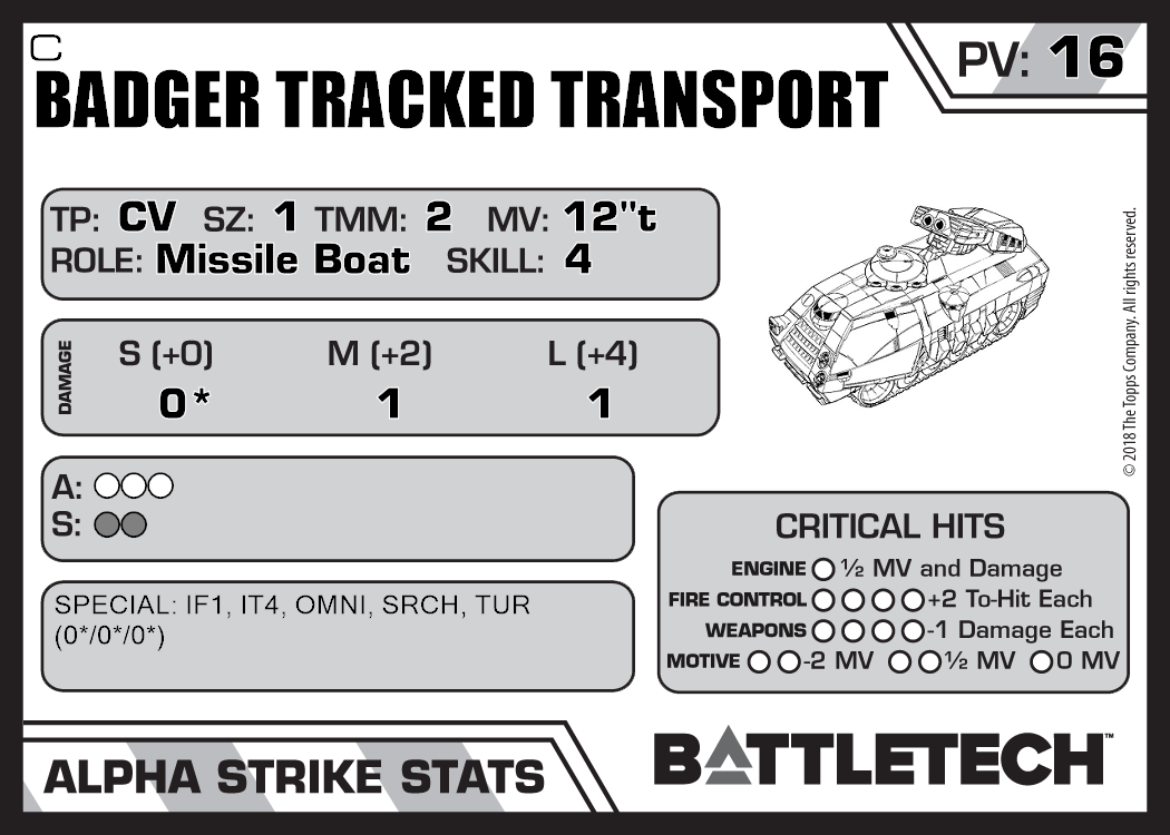 | Badger Tracked Transport Prime | 549 | 19 | Standard | TR:3058U | |