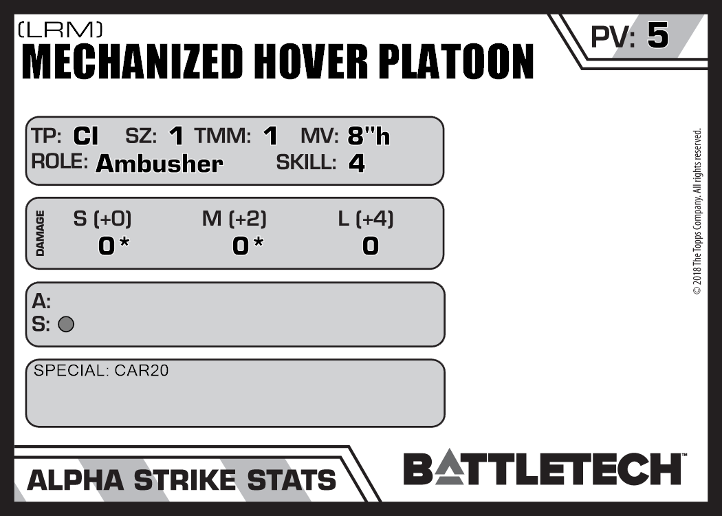 | Mechanized Hover Platoon (SRM) | 41 | 9 | Standard | TW | |