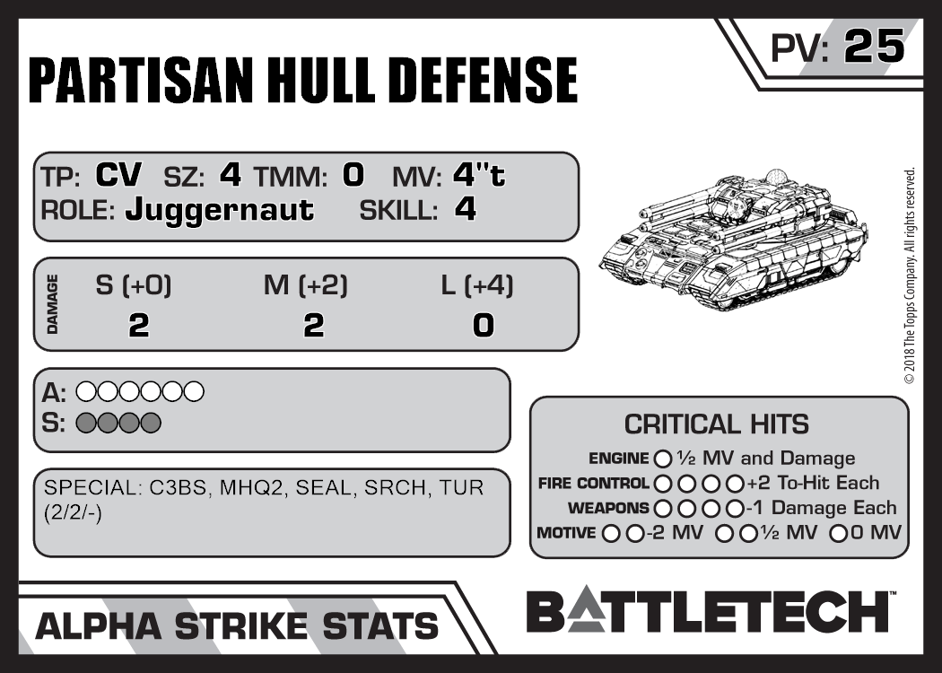 | Partisan Heavy Tank (AC2) | 580 | 16 | Introductory | TR:3039 | |