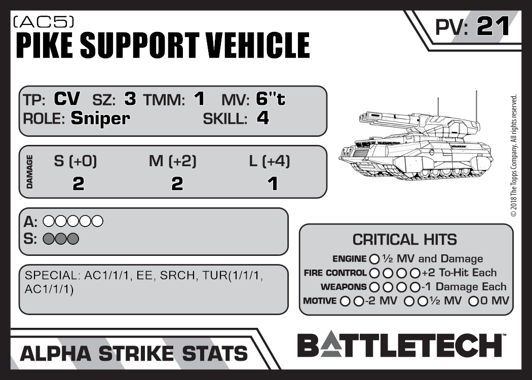 | Pike Support Vehicle (Clan) | 892 | 22 | Standard | RG30 | |