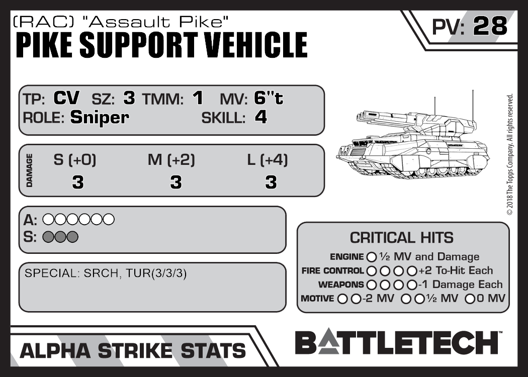 | Pike Support Vehicle (Clan) | 892 | 22 | Standard | RG30 | |