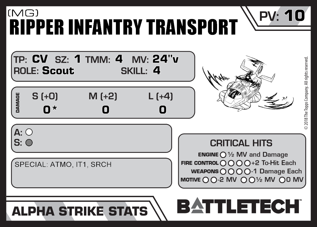| Ripper Infantry Transport (Infantry) | 108 | 10 | Standard | TR:3050U | |