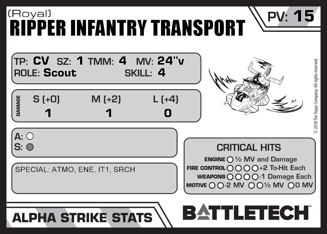 | Ripper Infantry Transport (Light PPC) | 371 | 15 | Standard | TR:3050U | |