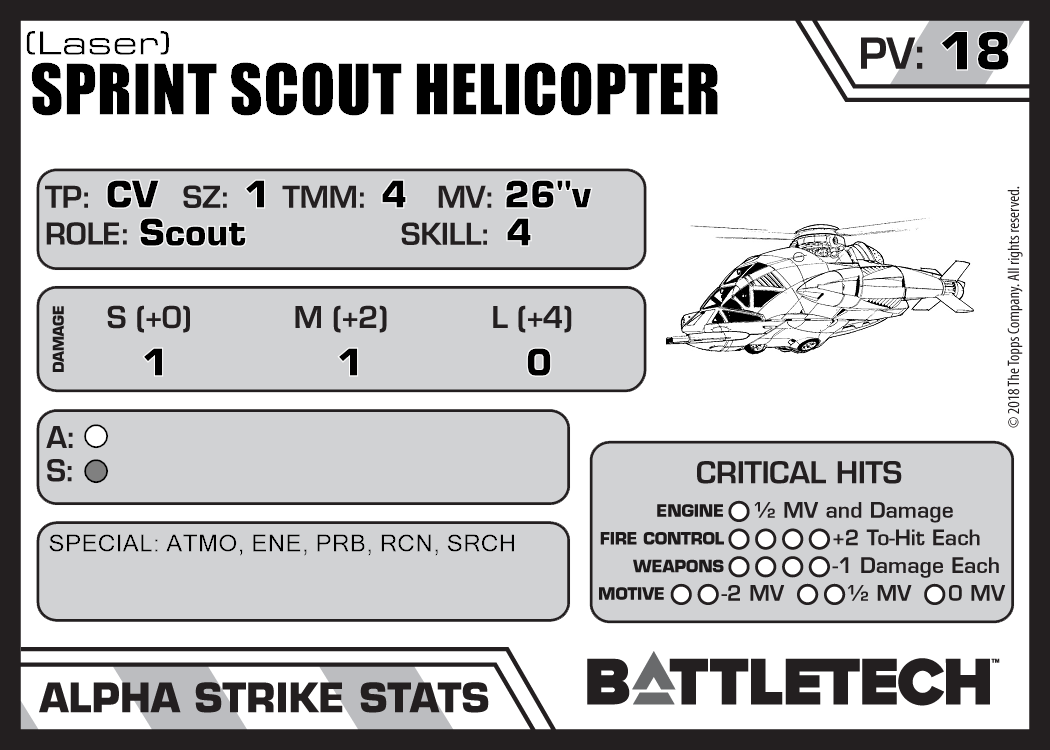 | Sprint Scout Helicopter (Interdictor) | 139 | 11 | Standard | TR:3085 | |