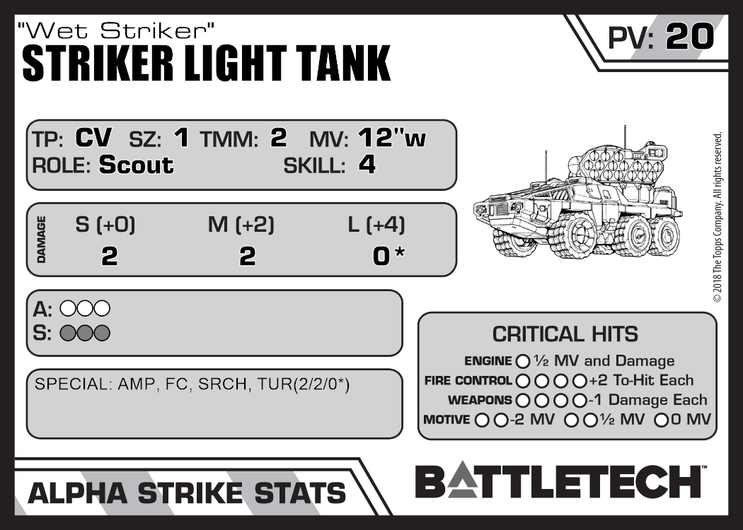 | Striker Light Tank (Sealed) | 590 | 19 | Advanced | TR:3085 | |