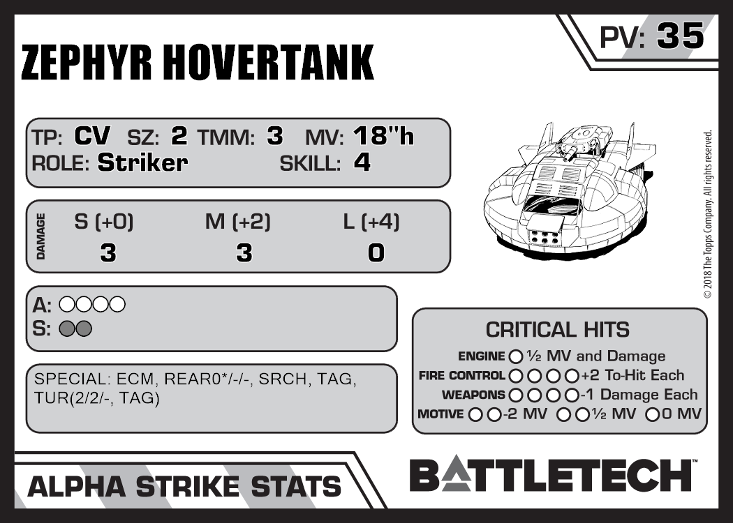 | Zephyr Hovertank (C3i) | 820 | 33 | Standard | TR:3050U | |