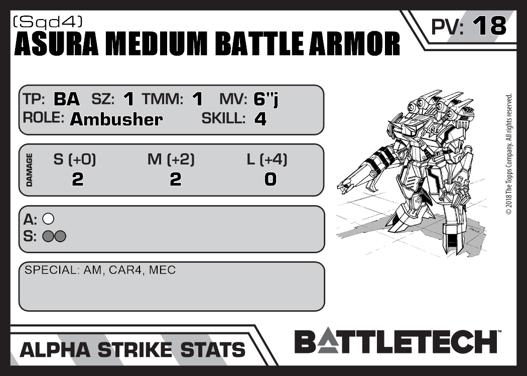| Asura Medium Battle Armor (Anti-Infantry) (Sqd6) | 347 | 14 | Standard | TR:3075 | |