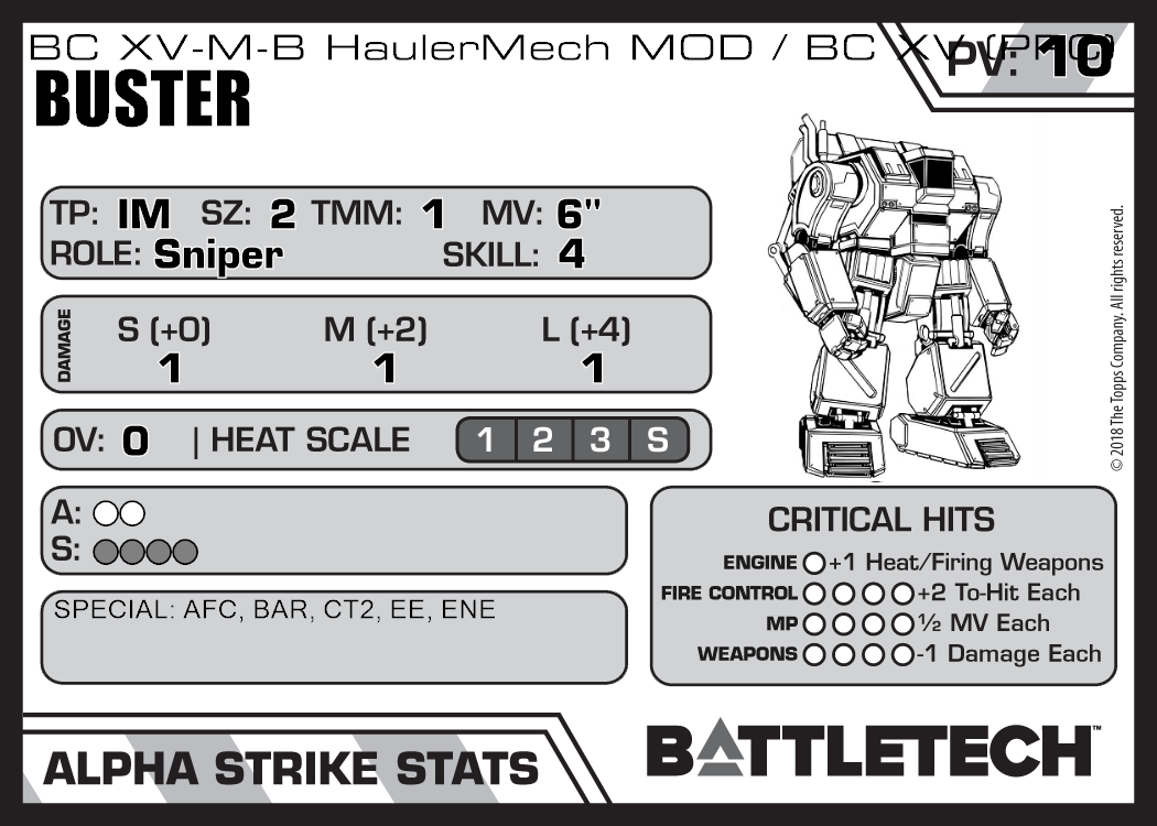 | Buster BC XV-M-C HaulerMech MOD | 726 | 14 | Standard | TR:VAr | |