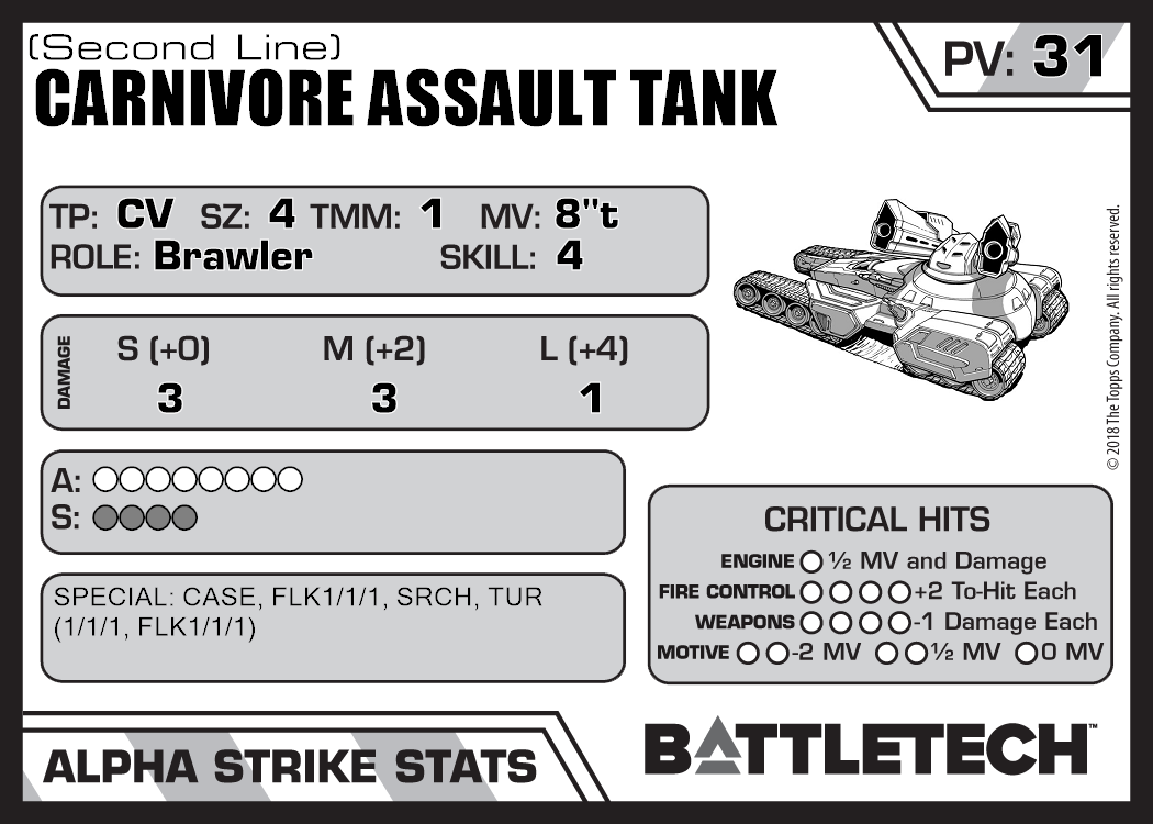 Carnivore Assault Tank (HAG) 2,286 45 Standard TR:3085