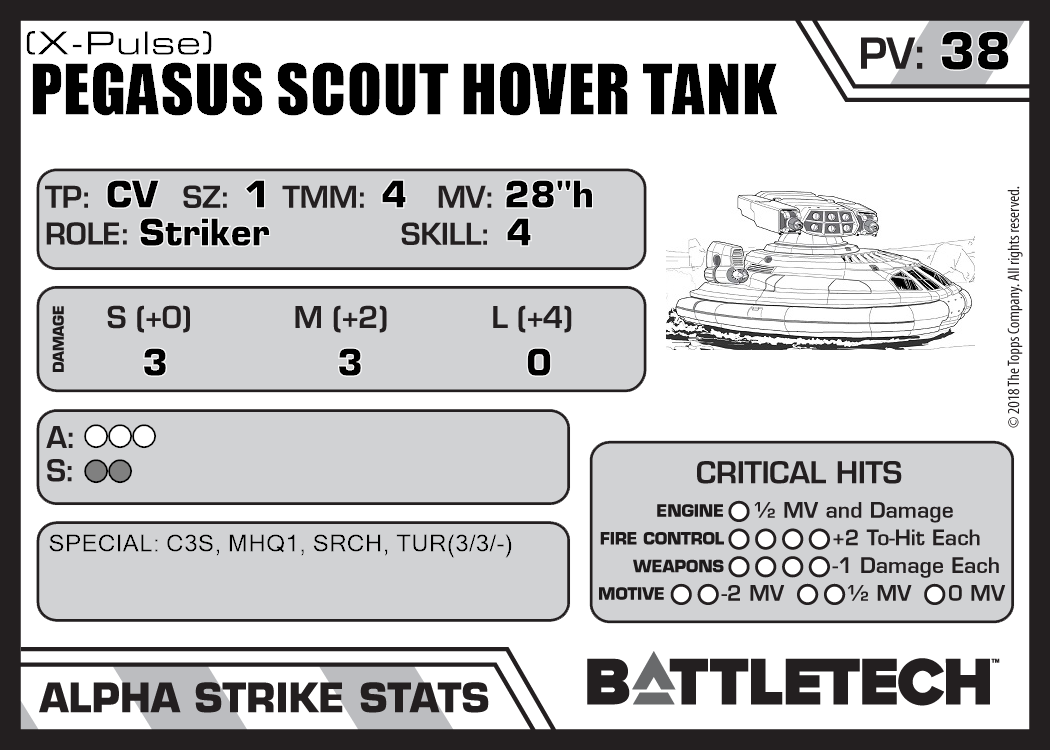 | Pegasus Scout Hover Tank (3058 Upgrade) | 706 | 30 | Standard | TR:3058U | |