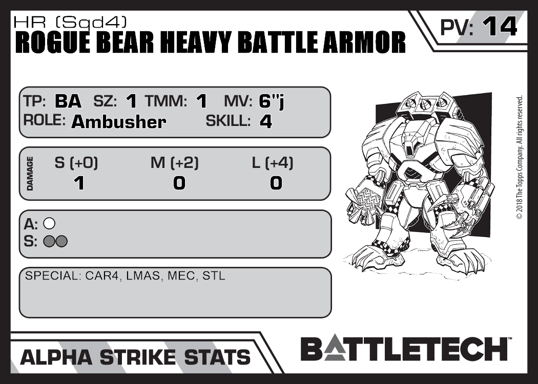 | Rogue Bear Heavy Battle Armor (Sqd4) | 346 | 18 | Standard | TR:3075 | |
