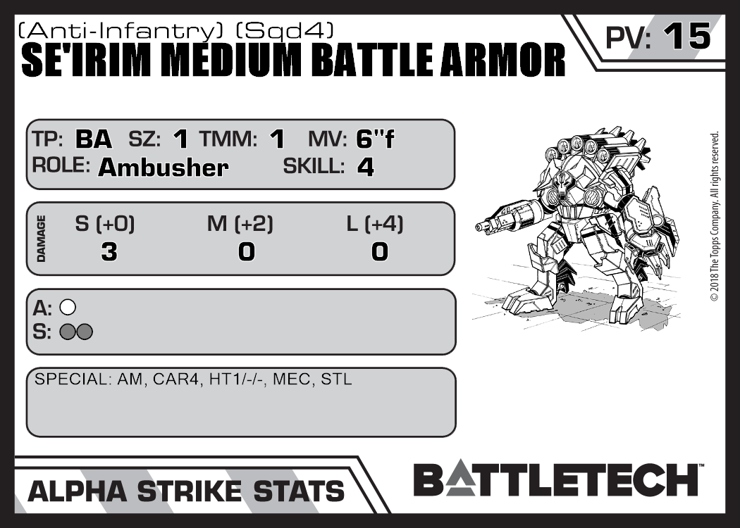 | Se'irim Medium Battle Armor (Sqd5) | 340 | 15 | Standard | TR:3075 | |