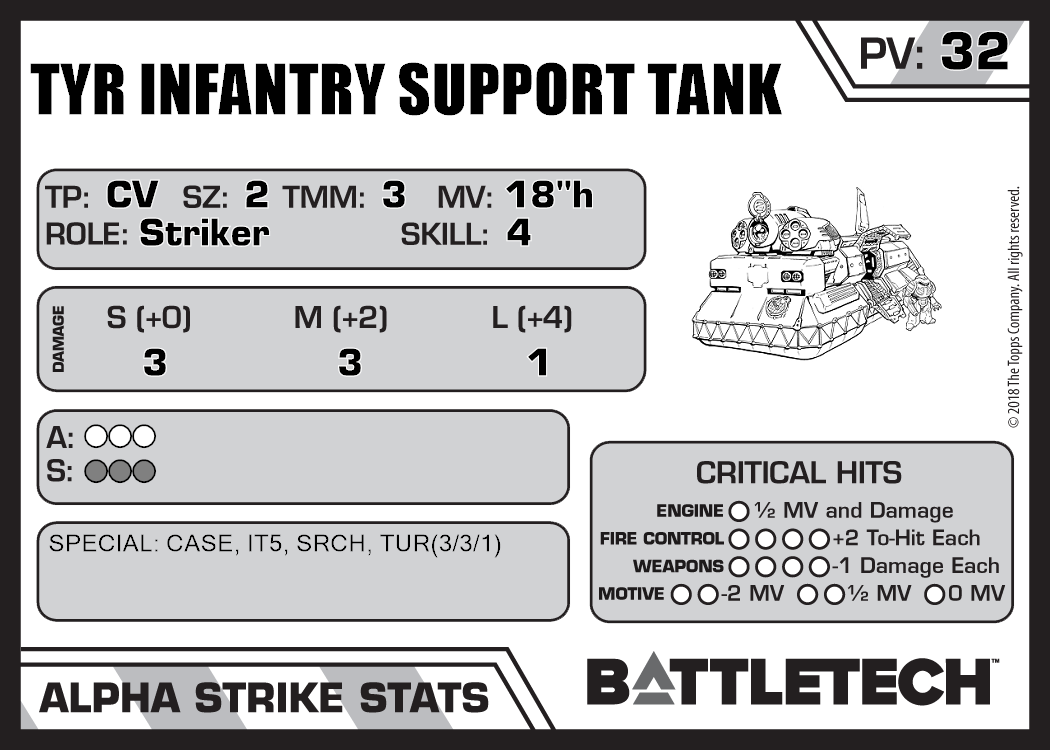 Tyr Infantry Support Tank (Kurita) 687 28 Standard TR:3067