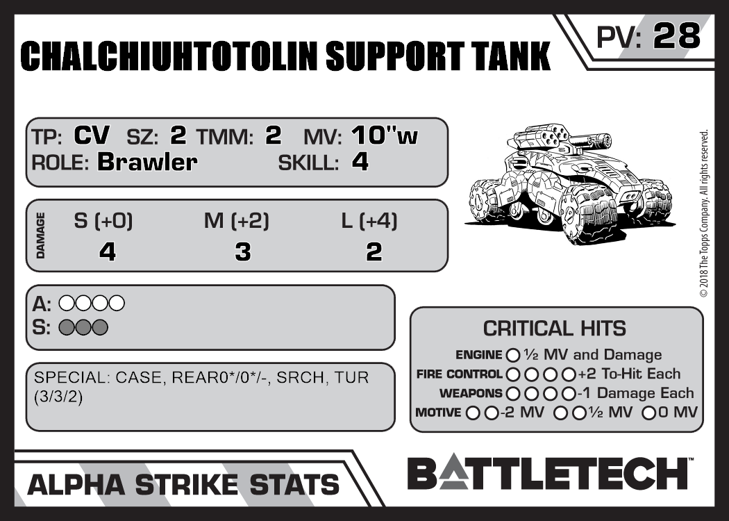 | Chalchiuhtotolin Support Tank (Bombast Laser) | 912 | 29 | Experimental | TR:3085S | |