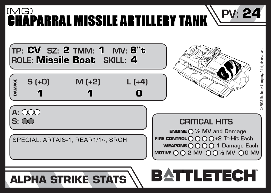 | Chaparral Missile Artillery Tank (SRM) | 832 | 24 | Advanced | TR:3050U | |