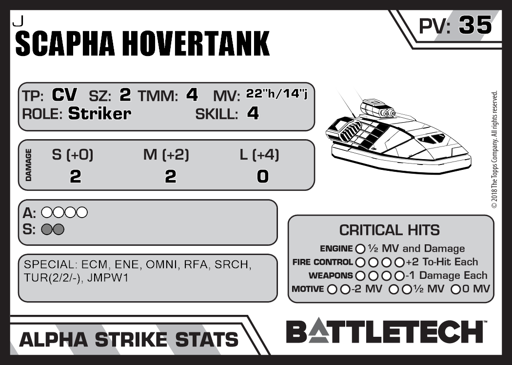 | Scapha Hovertank I | 2,096 | 32 | Advanced | TR:3145 |