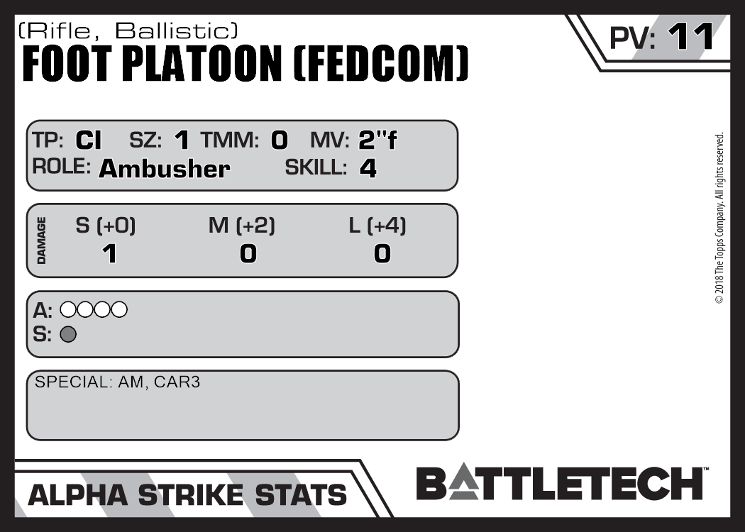 | Foot Platoon (FedCom) (SRM) | NA | 13 | Advanced | TO:AUE |