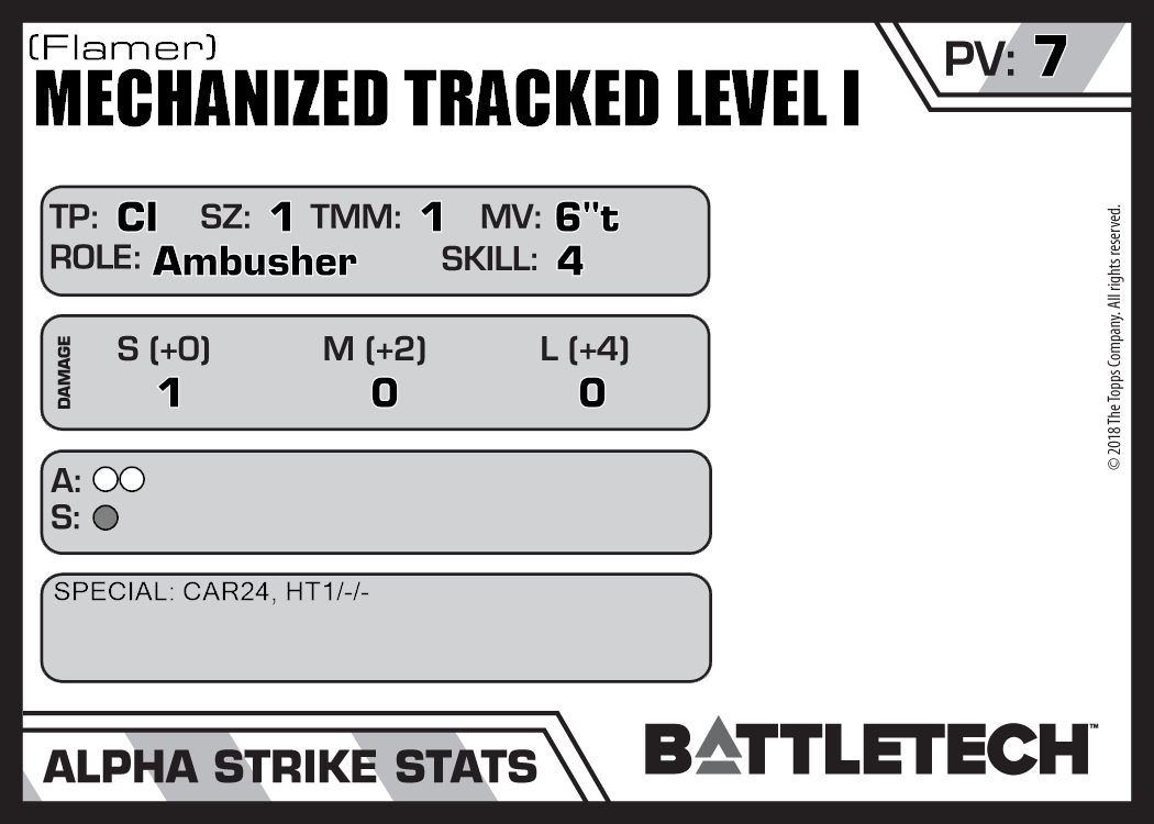 | Mechanized Tracked Level I (Rifle, Energy) | NA | 10 | Standard | TW | |