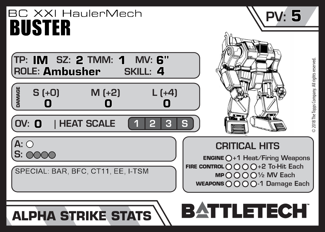 | Buster BC XXI-M HaulerMech MOD | 504 | 14 | Standard | TR:I | |