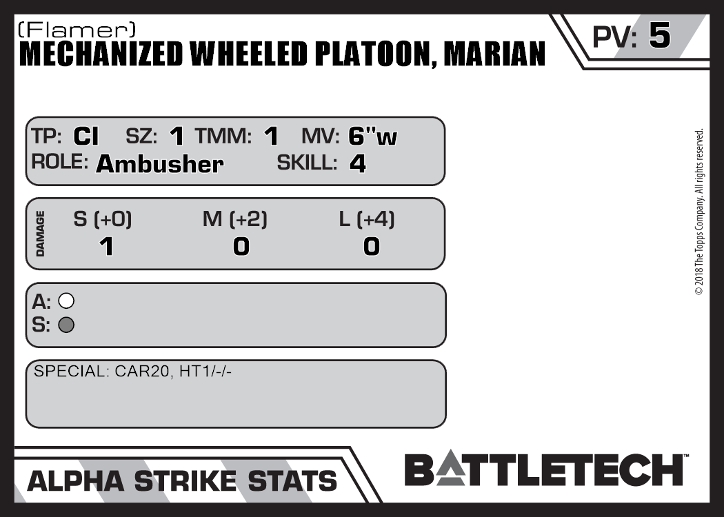 | Mechanized Wheeled Platoon, Marian (MG) | NA | 5 | Standard | TW |