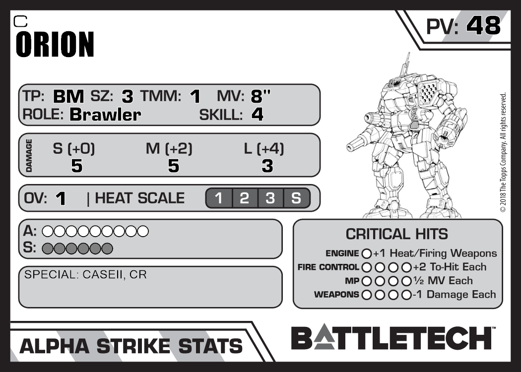 Orion ON1-K (Kerensky) 1,821 41 Experimental TR:SW