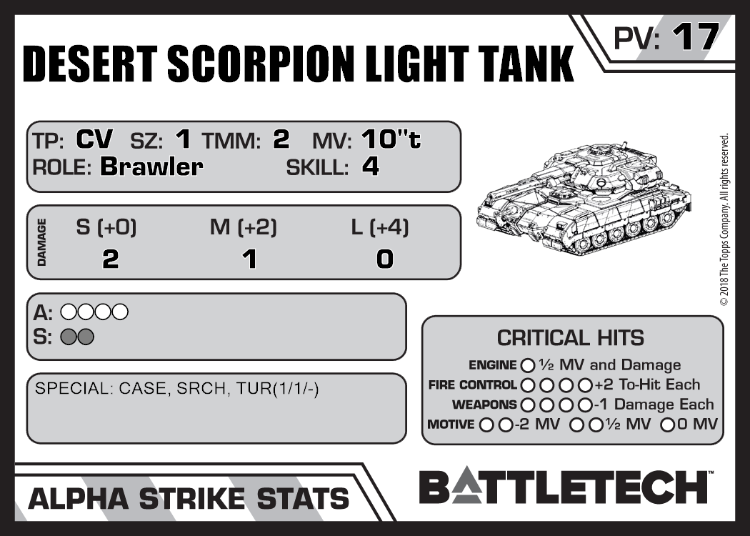 | Scorpion Light Tank (Armor) | 325 | 11 | Standard | RG33 | |