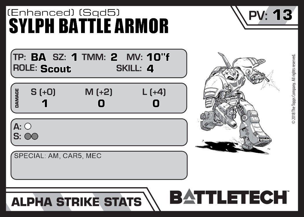 | Sylph Battle Armor (Sqd6) | 485 | 16 | Standard | TR:3058U | |