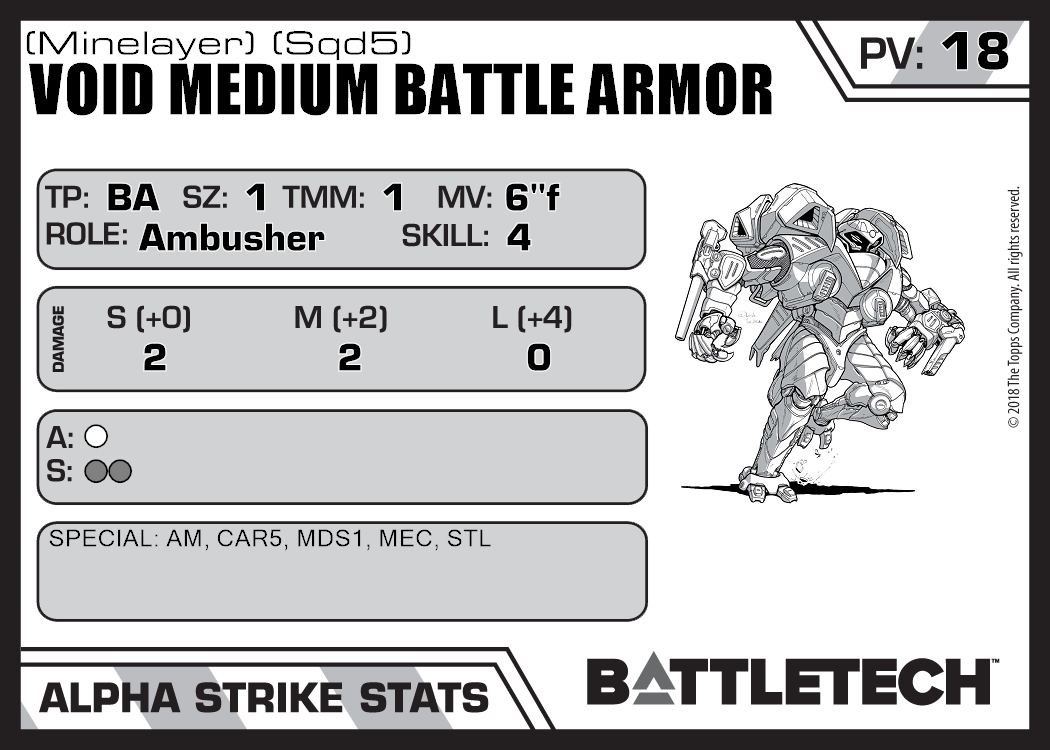 | Void Medium Battle Armor (Minelayer) (Sqd6) | 544 | 18 | Advanced | TR:Proto | |