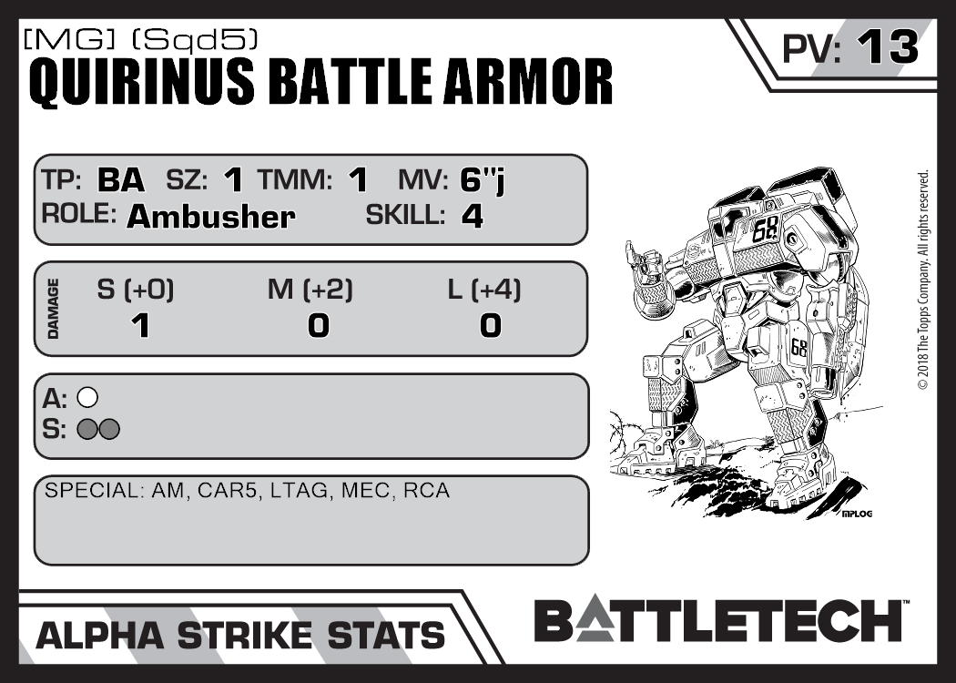 | Quirinus Battle Armor [MG] (Sqd4) | 240 | 13 | Advanced | TR:3145 | |