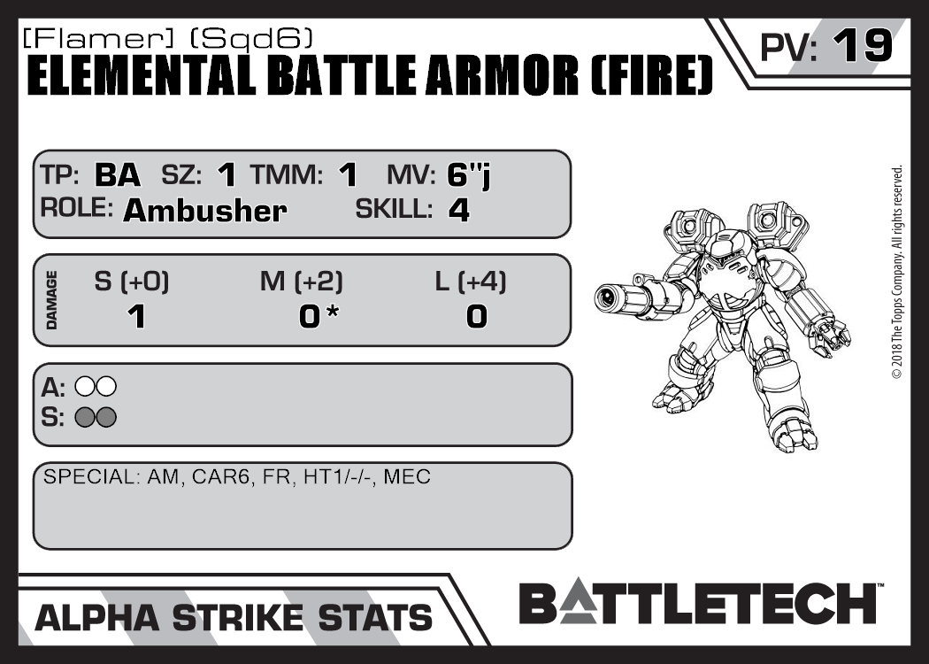 | Elemental Battle Armor (Fire) [AP Gauss] (Sqd4) | 428 | 18 | Standard | TR:3085 | |