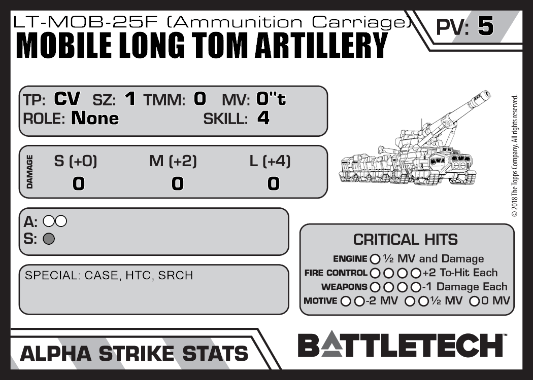| Mobile Long Tom Artillery Ammunition Carriage LT-MOB-25 | 152 | 5 | Advanced | TR:3039 | |