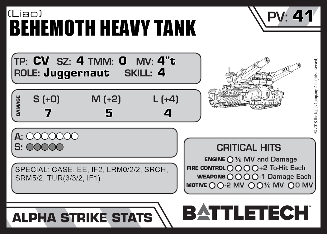 Behemoth Heavy Tank (Kurita Upgrade) 1,789 48 Advanced RG31