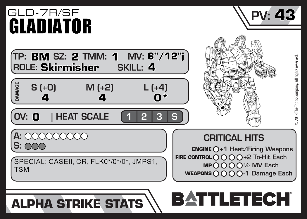 Gladiator GLD-4R 1,291 31 Introductory TR:SW