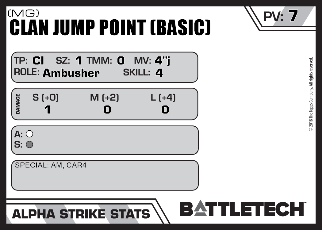 | Clan Jump Point (Basic) (Flamer) | 60 | 8 | Standard | TW | |