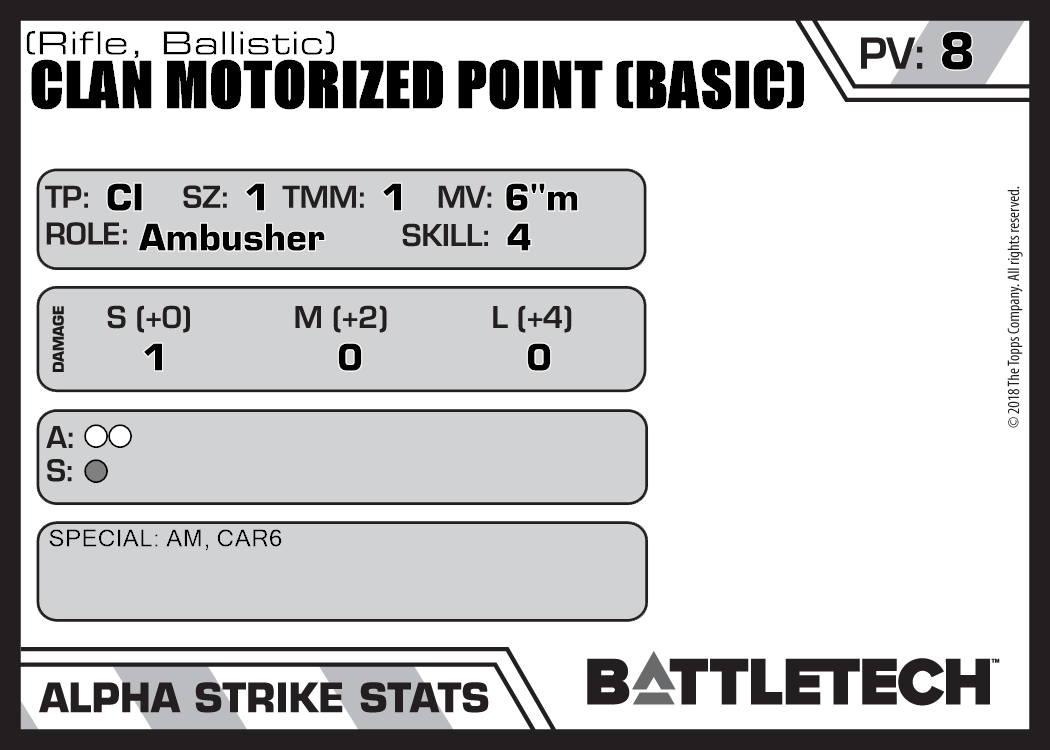 | Clan Motorized Point (Basic) (SRM) | 81 | 10 | Standard | TW |