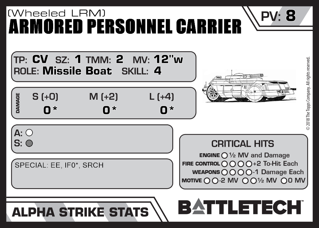 | Armored Personnel Carrier (Tracked LRM) | 208 | 8 | Introductory | TR:3039 | |