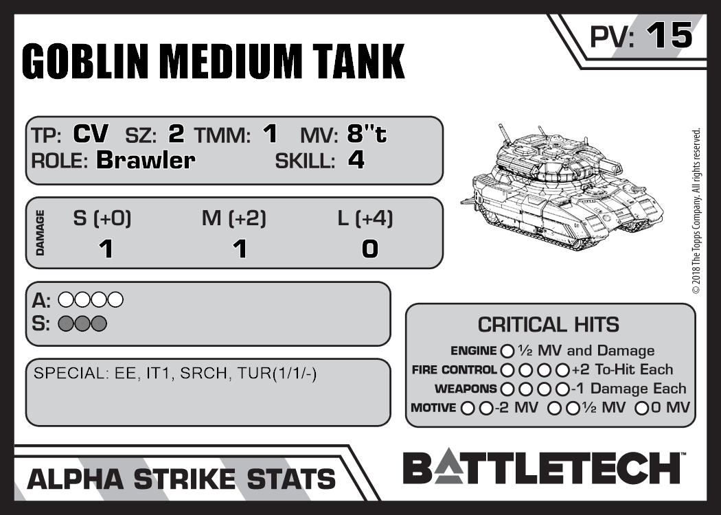 | Goblin Medium Tank (SRM) | 647 | 21 | Introductory | TR:3039 | |