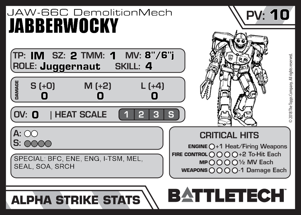 | Jabberwocky JAW-67 MilitiaMech | 907 | 24 | Standard | TR:VAr | |