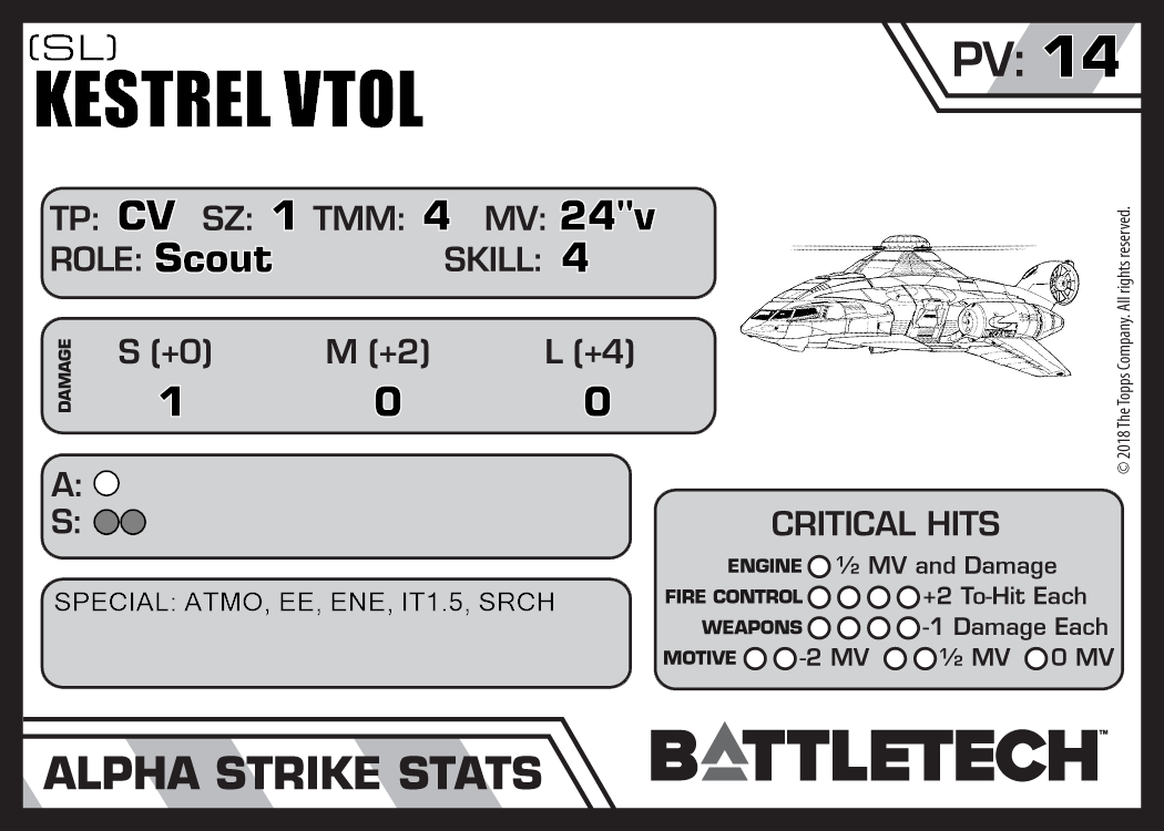 | Kestrel VTOL (Clan) | 166 | 13 | Standard | TR:3058U | |