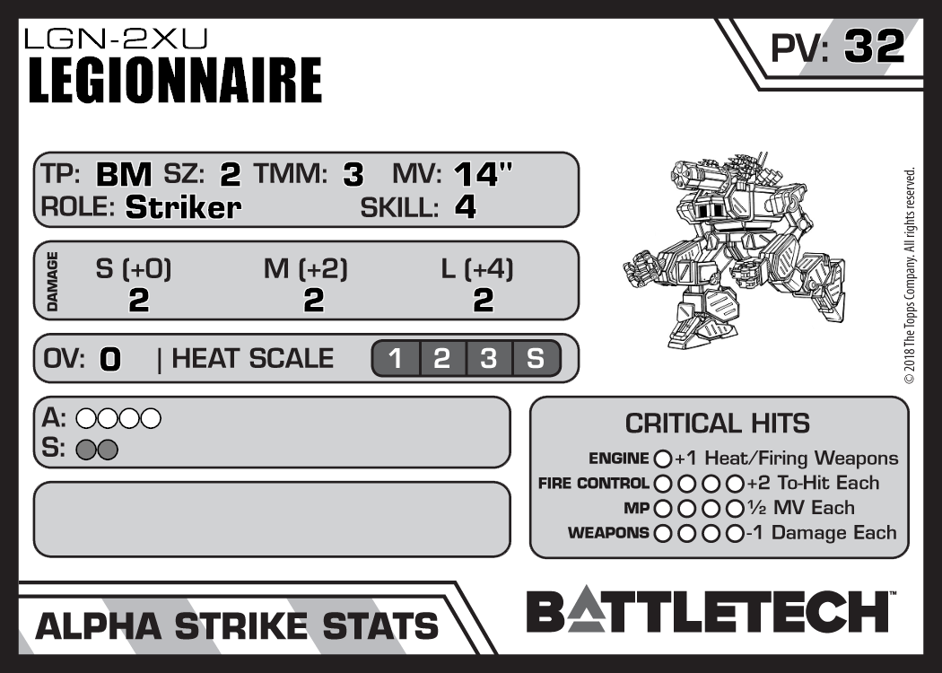 | Legionnaire LGN-2X1 MUSE FIRE | 2,032 | 41 | Experimental | XTR:Davion | |
