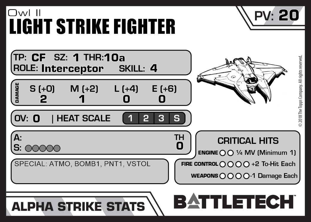 | Light Strike Fighter Owl | 129 | 18 | Introductory | TR:3039 | |