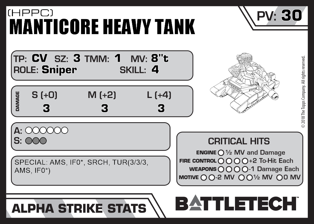 | Manticore Heavy Tank (3055 Upgrade) | 957 | 29 | Standard | TR:3058U | |
