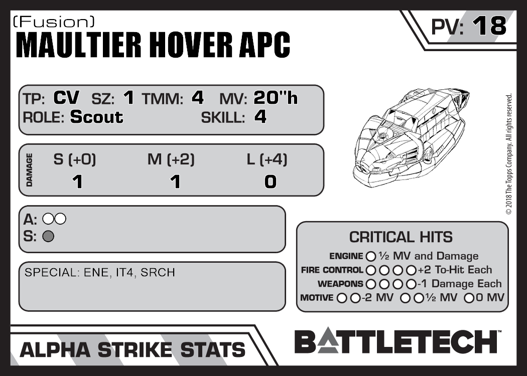 | Maultier Hover APC (Intermediate) | 210 | 12 | Standard | TR:3058U | |