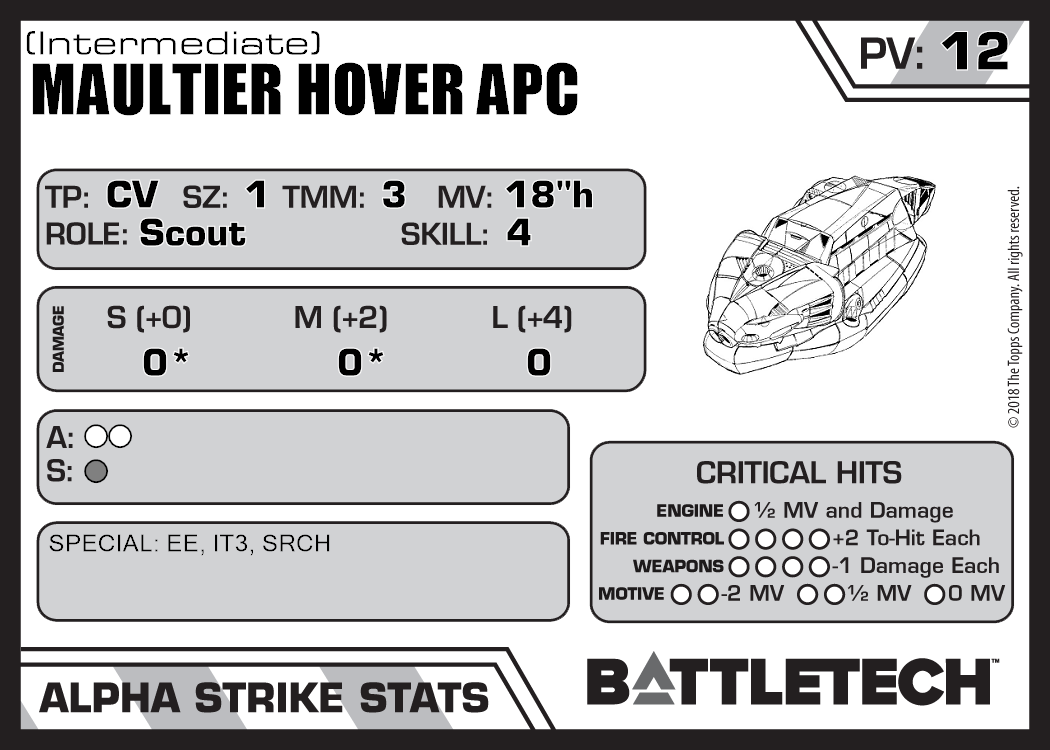 | Maultier Hover APC (Basic) | 197 | 12 | Introductory | TR:3058U | |