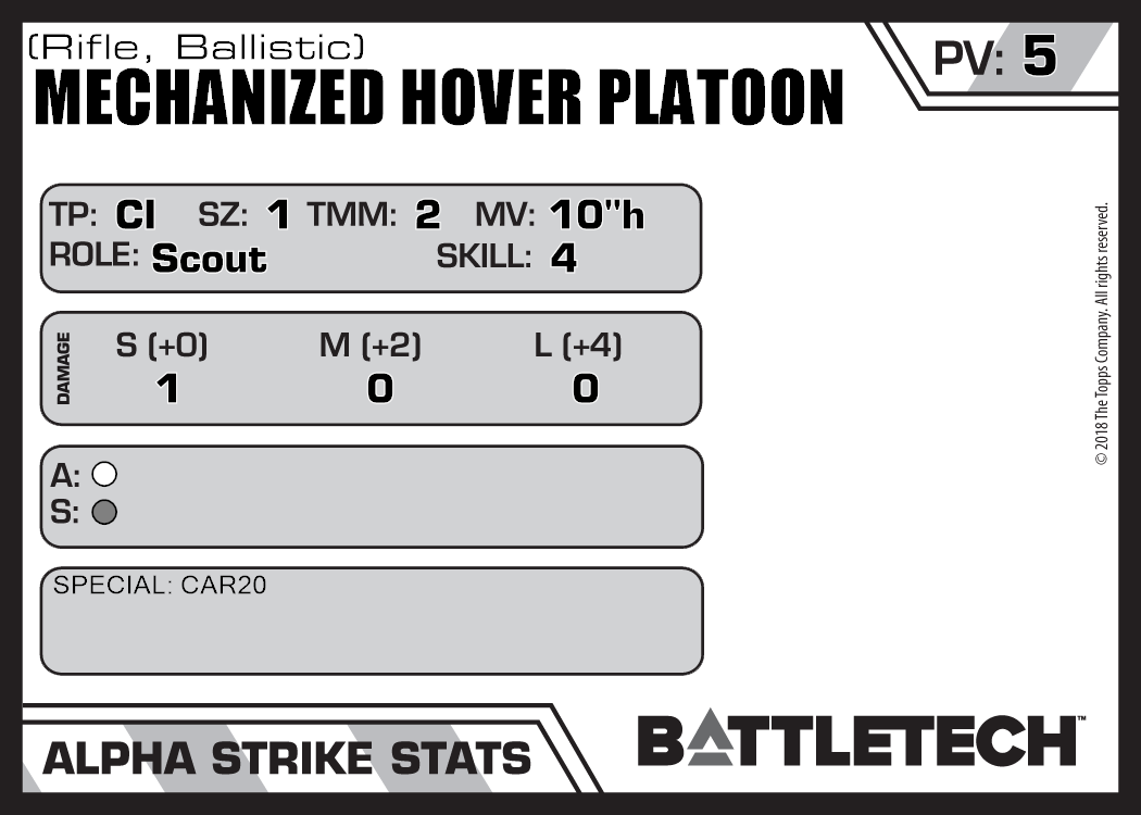 | Mechanized Hover Platoon (Rifle, Energy) | 45 | 8 | Standard | TW | |